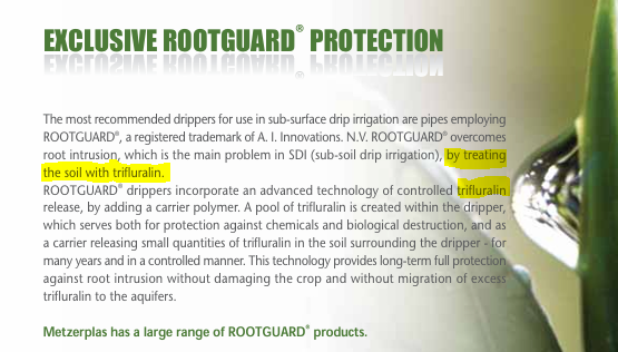 Dit houdt dus in dat de druppelslangen met Rootguard, die al langer op voorraad liggen, geen werkende stoffen meer hebben om wortelgroei in de druppelaar te voorkomen.